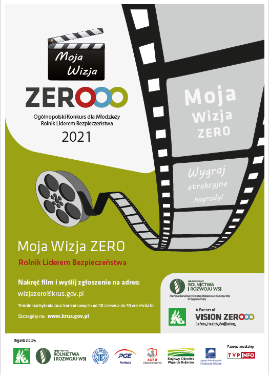 Zadaniem konkursowym jest przygotowanie krótkiego (max. 2-minutowego) filmu promocyjnego pod hasłem "Moja Wizja Zero - Rolnik Liderem Bezpieczeństwa". Konkurs adresowany jest do młodzieży w wieku 15-23 lata i będzie trwał od 30 czerwca do 30 września 2021 roku.