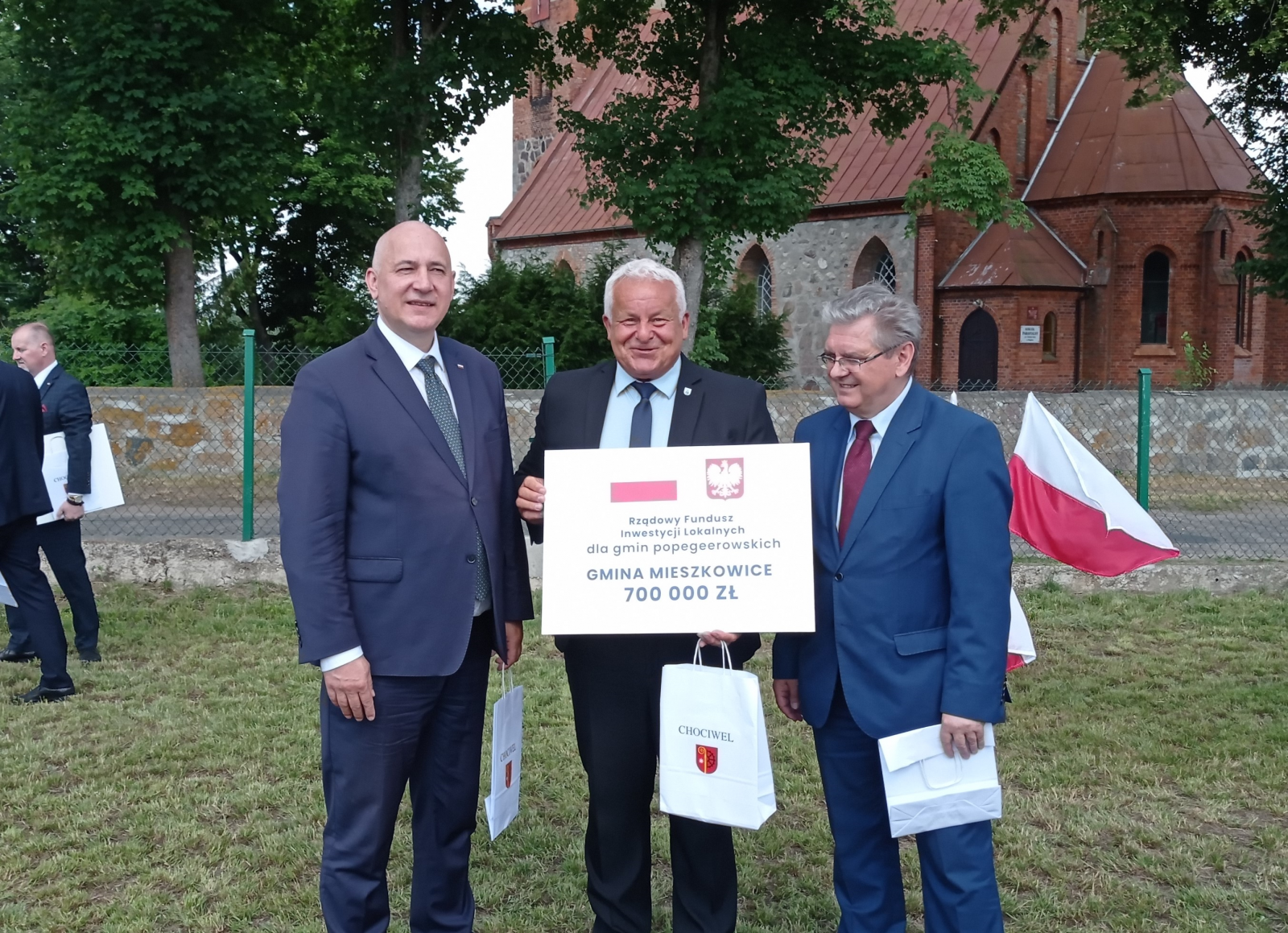 W ostatnią sobotę Burmistrz Andrzej Salwa uczestniczył w uroczystym przekazaniu czeków na realizację inwestycji, w ramach Rządowego Funduszu Inwestycji Lokalnych dla Gmin Popegeerowskich. Spotkanie odbyło się w miejscowości Długie. Czek na kwotę 700 000 złotych zostanie przeznaczony na prace drogowe w miejscowości Czelin.
