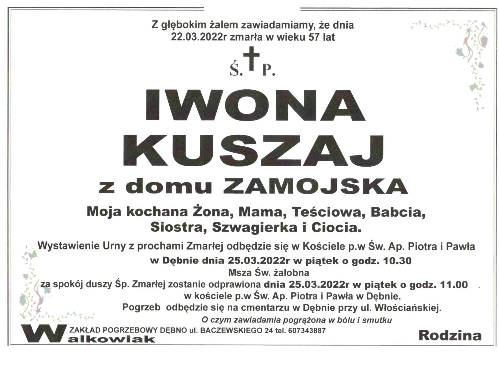 Z głębokim smutkiem i żalem przyjęliśmy wiadomość o śmierci Iwony Kuszaj, naszej wieloletniej Koleżanki,