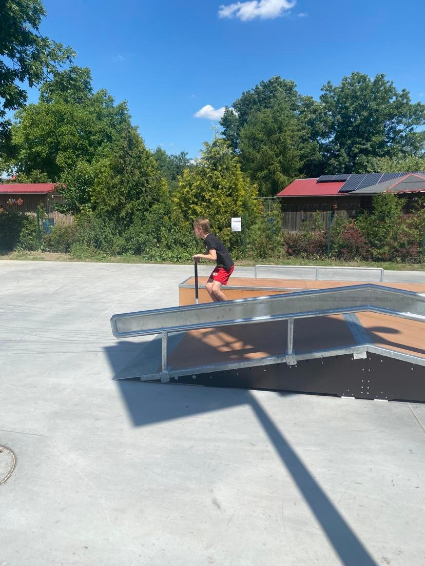Użytkowników skateparku coraz więcej! Śmiało można powiedzieć, że jedna z ostatnio zakończonych inwestycji - mieszkowicki skatepark spełnia swoją rolę, a miejsce to jest odwiedzane przez młodzież i dzieci naszego miasta. Na poniższych zdjęciach widać dwóch młodych użytkowników nowej lokacji. Chłopcy nie są jedynymi użytkownikami tego miejsca i dotychczas po godzinie 15 pojawiało się tam sporo osób. Nadchodzą wakacje. Już jutro rozpoczyna się czas letniej laby - zatem śmiało możemy założyć, że i osób korzystających z inwestycji będzie więcej i pojawiać będą się częściej. W tym miejscu warto przypomnieć jednak o zasadach tam panujących (określonych w regulaminie dostępnym na obiekcie) - brak ochraniaczy czy kasku przenosi całą odpowiedzialność za wszelkie ewentualności na użytkowników.