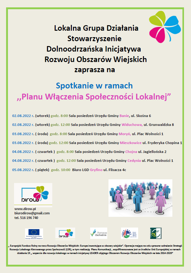 Stowarzyszenie Dolnoodrzańska Inicjatywa Rozwoju Obszarów Wiejskich, w ramach tworzenia Lokalnej Strategii Rozwoju , planuje organizację spotkań poświęconych w szczególności analizie potrzeb rozwojowych i potencjału danego obszaru, a także celów strategii, w tym wymiernych celów końcowych dotyczących rezultatów oraz odnośnych planowanych działań.