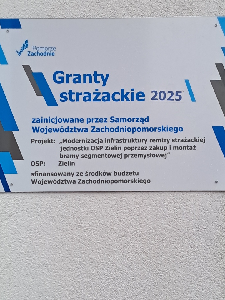 Ochotnicza Straż Pożarna w Zielinie zakończyła realizację zadania polegającego na modernizacji infrastruktury remizy strażackiej poprzez zakup i montaż nowoczesnej bramy segmentowej przemysłowej. Inwestycja była odpowiedzią na potrzebę poprawy warunków przechowywania sprzętu ratowniczego, zwiększenia bezpieczeństwa oraz usprawnienia gotowości operacyjnej jednostki OSP Zielin.