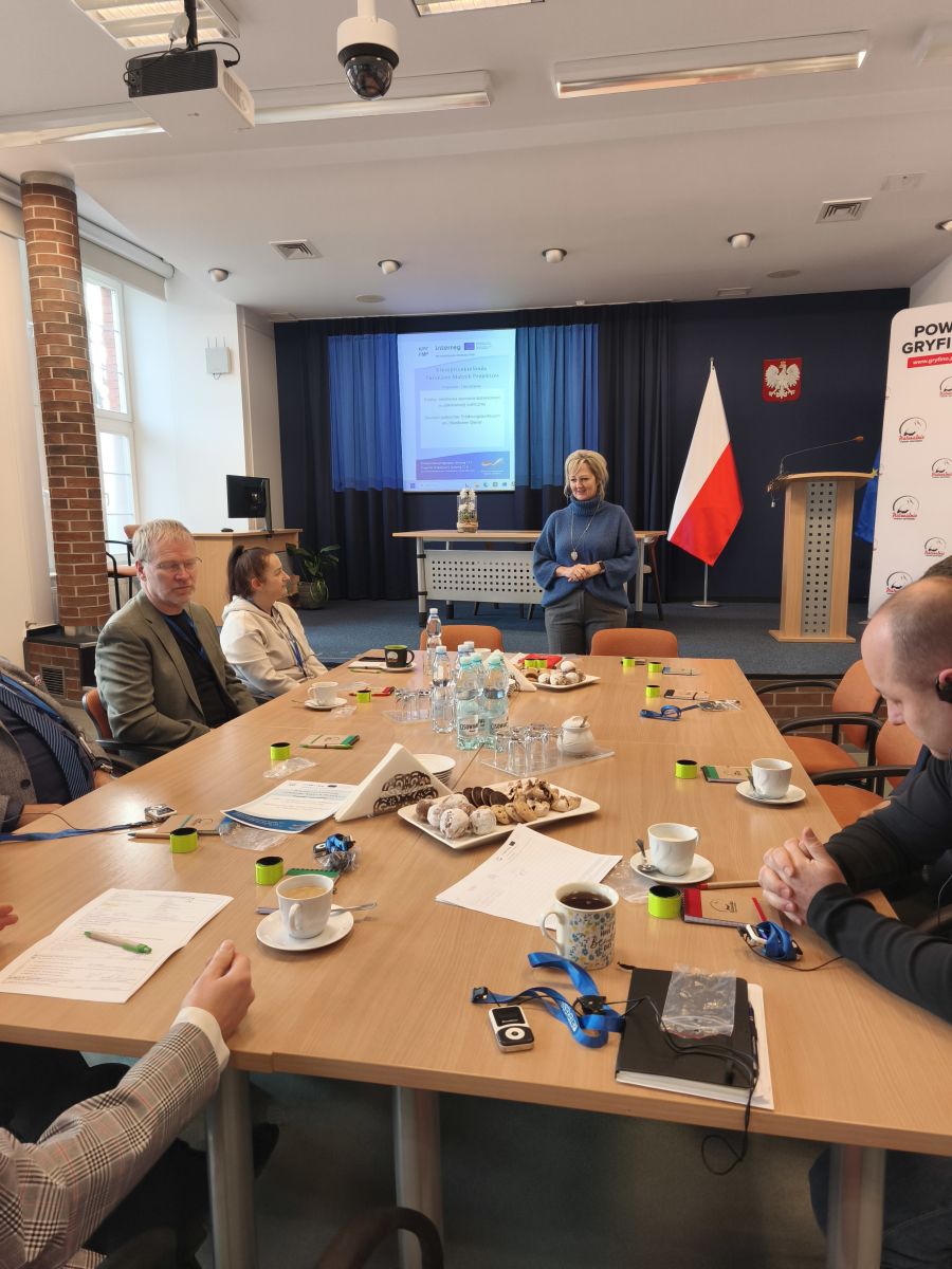 27 listopada 2025 r. w Starostwie Powiatowym w Gryfinie odbyło się spotkanie w ramach projektu „Polsko-niemiecka wymiana doświadczeń w administracji publicznej". Uczestników powitała Starosta Gryfiński Ewa Dudar.