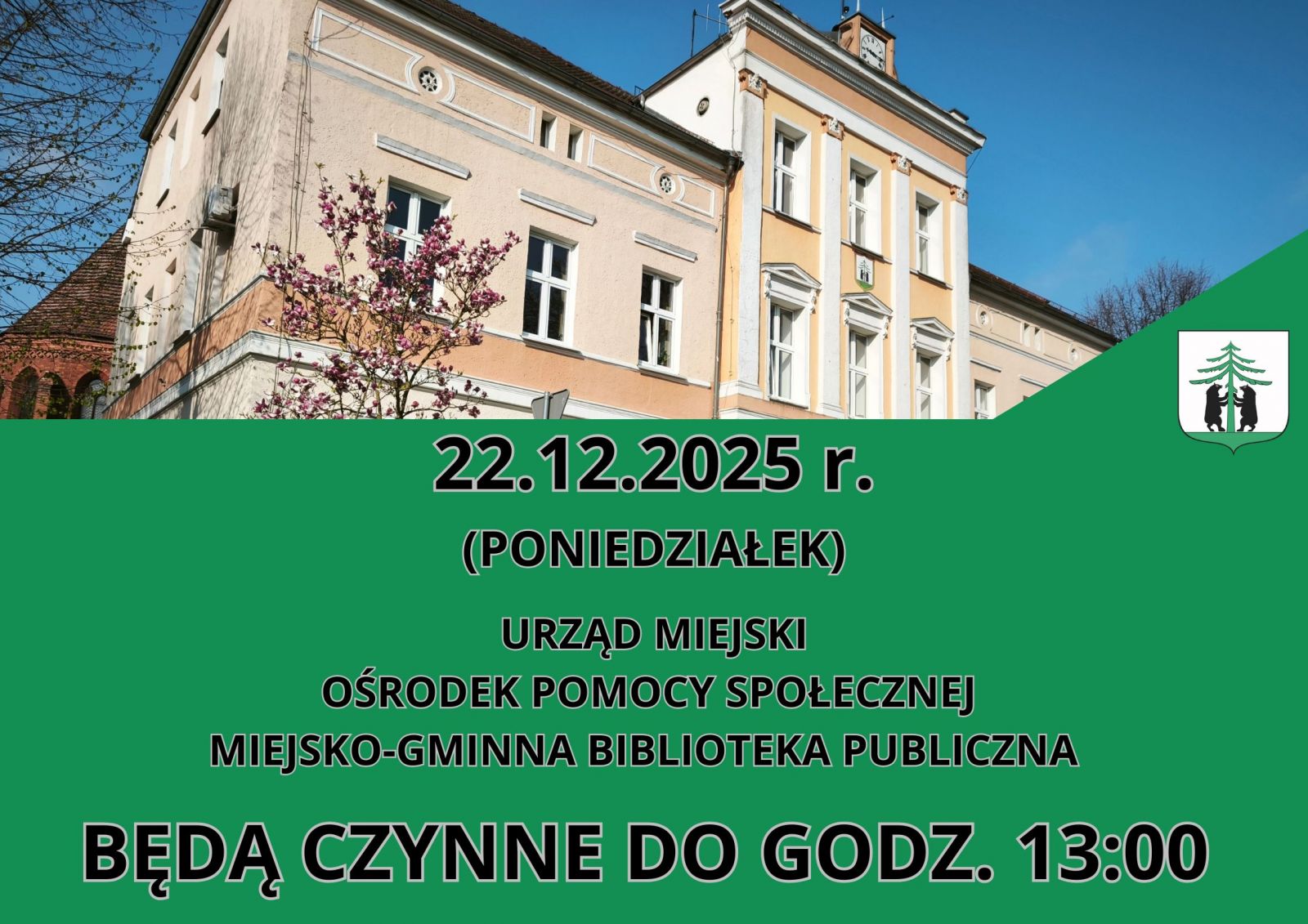 Urząd czynny od poniedziału do piątku w godzinach 7:00-15:00