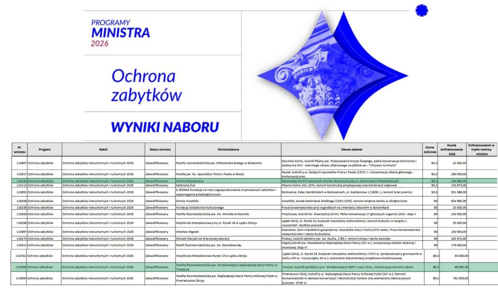 Z ogromną satysfakcją informujemy, że Gmina Mieszkowice pozyskała dofinansowanie w ramach programu Ministra Kultury i Dziedzictwa Narodowego „Ochrona zabytków” - nabór 2026.