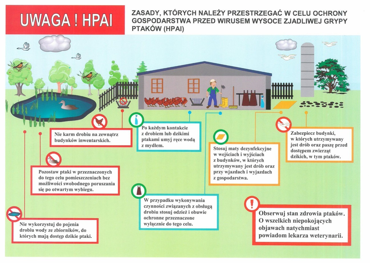 W związku z wystąpieniem wysoce zjadliwej grypy ptaków, Powiatowy lekarz Weterynarii w Gryfinie apeluje do wszystkich hodowców drobiu zachowania szczególnej ostrożności i przestrzeganiu zasad bioasekuracji podczas obsługi drobiu, minimalizujących ryzyko przeniesienia wirusa grypy ptaków do gospodarstwa. Do podstawowych środków bezpieczeństwa biologicznego, należą: