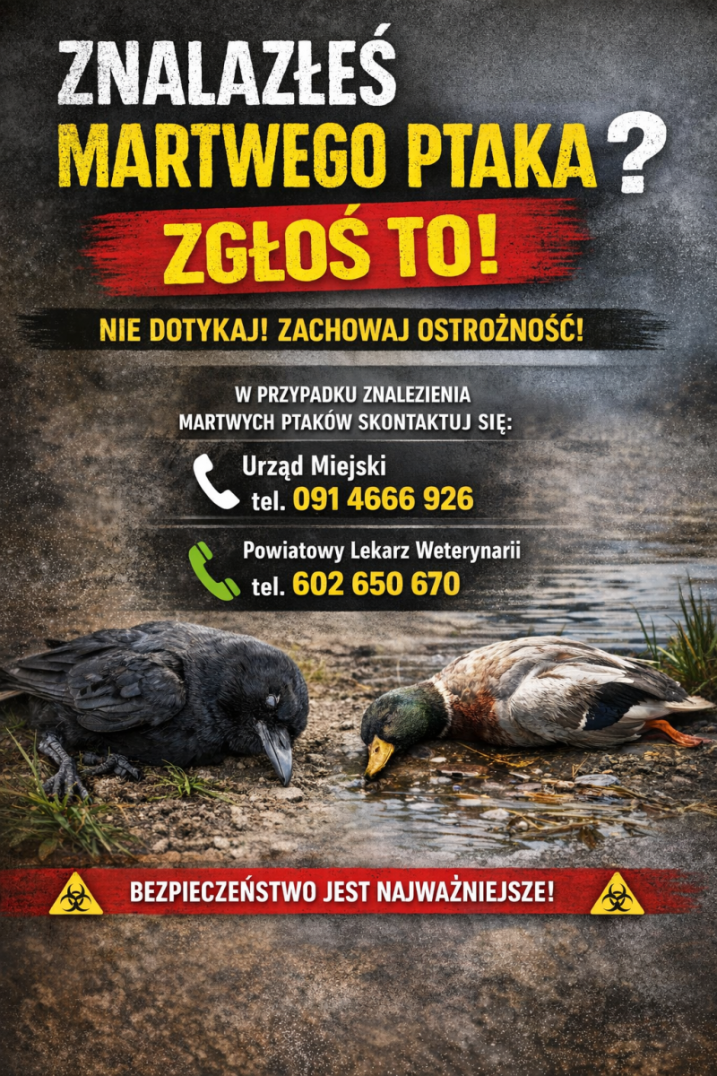 Powiatowy Lekarz Weterynarii w Gryfinie informuje o wystąpieniu wysoce zjadliwej grypy ptaków (HPAI) u dzikich ptaków w miejscowości Bielinek oraz Strzeszów. Wystąpienie choroby potwierdzono w dniach 12.02.2026 r. i 16.02.2026 r. w laboratorium Państwowego Instytutu Weterynaryjnego Państwowego Instytutu Badawczego w Puławach. Próbki do badania z m. Bielinek oraz m. Strzeszów pobrano w dniu 4 lutego od 13 ptaków wybranych z populacji 39 martwych łabędzi niemych (Cygnus olor). W próbkach, które zostały zbadane w ramach monitoringu biernego ptasiej grypy u dzikich ptaków, stwierdzono podtyp wirusa H5N1 posiadający profil genetyczny charakterystyczny dla wirusów o wysokiej zjadliwości (HPAI).