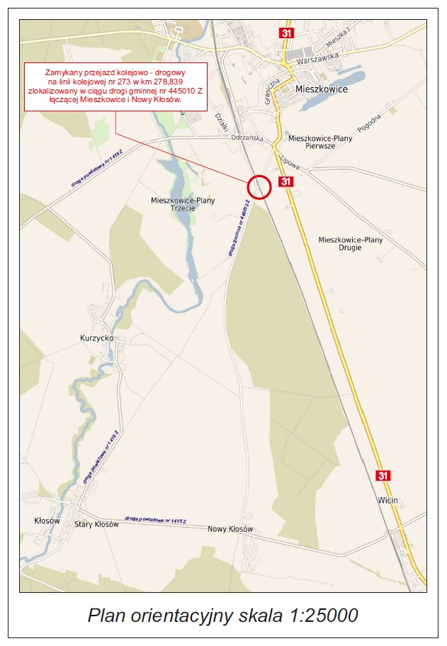 - Zakres robót: modernizacja przejazdu kolejowo – drogowego na linii kolejowej nr 273 w km 278,839.