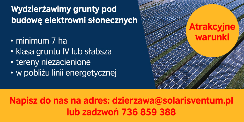 Firma Solaris Ventum Sp. z o. o. wydzierżawi grunty pod budowę farm słonecznych