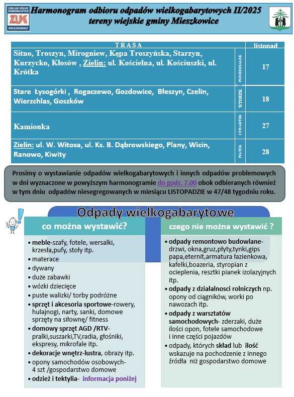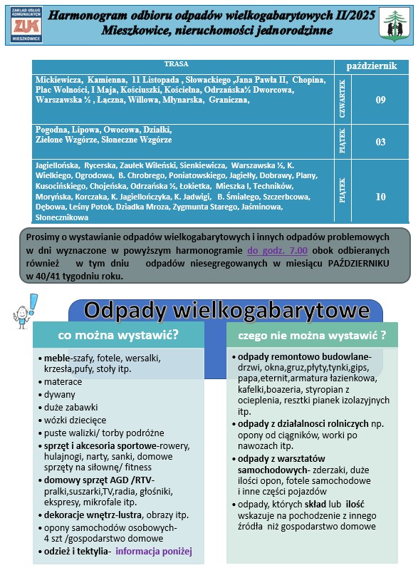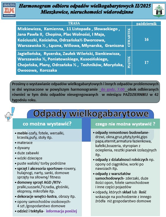 Harmonogram odpadów wielkogabarytowych II/2025