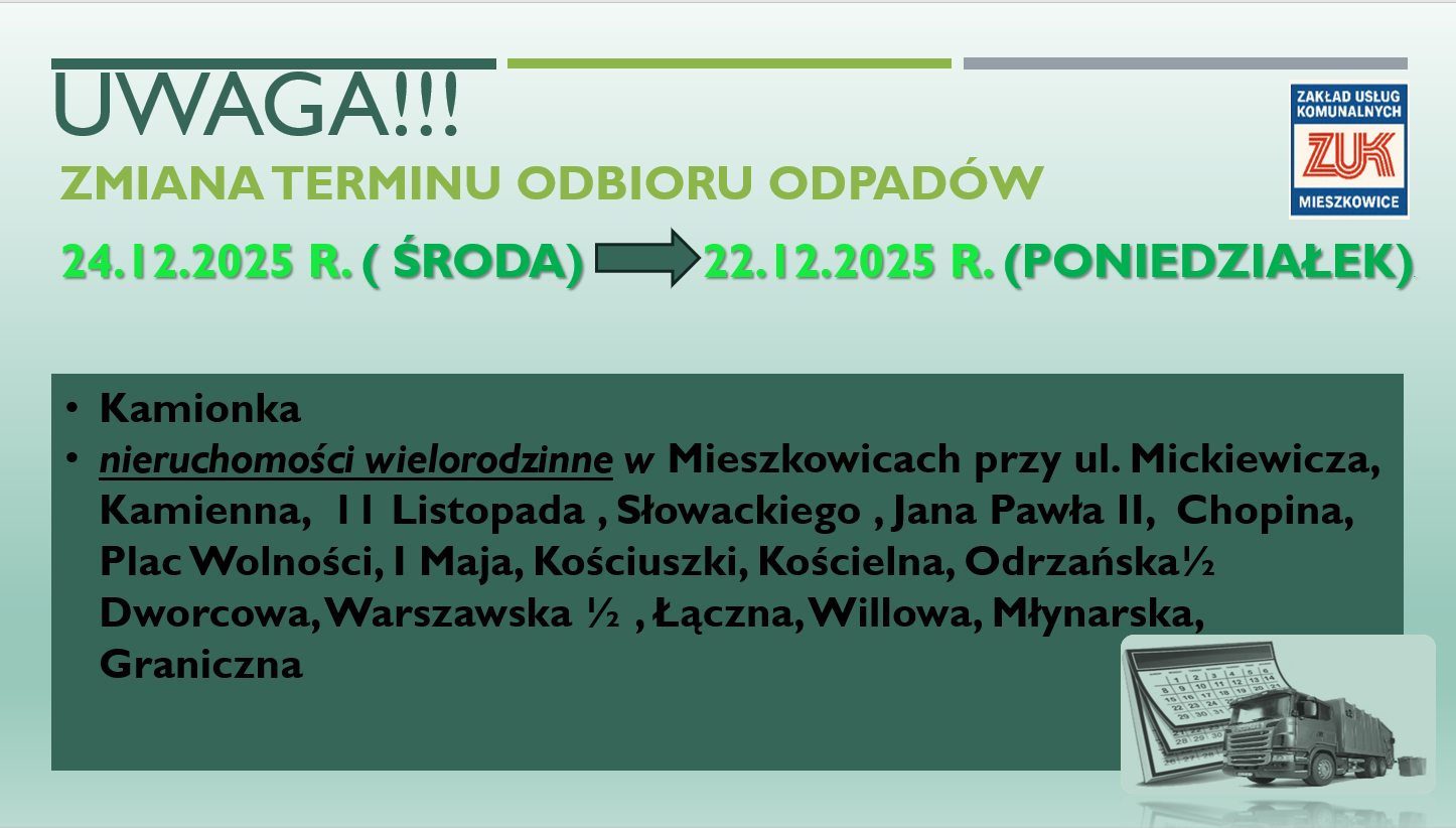 Zaplanowane w harmonogramie odbiory odpadów w Wigilię - 24.12.2025 r. ( środa),
